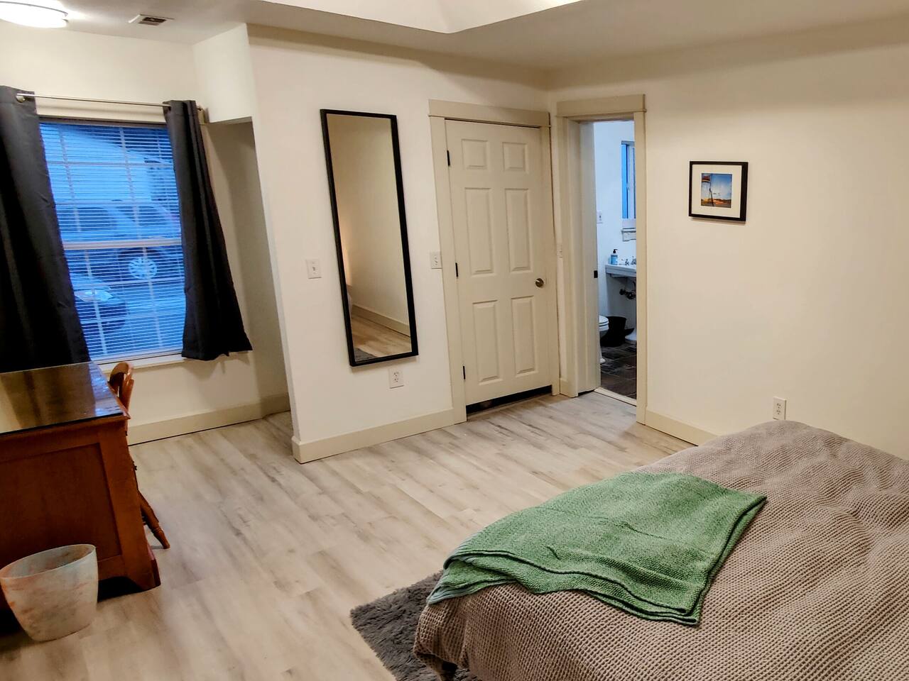 One dedicated driveway parking space for the guests. There is also plenty of street parking available mere steps away from the private entrance.